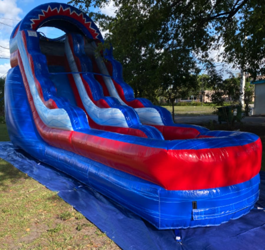 Make your event unforgettable by renting our Red White and Blue Dual Lane Slide today!